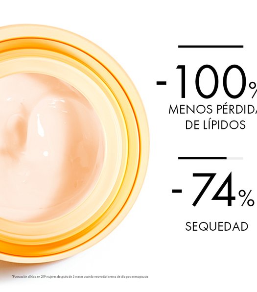 * Para CREMA DE NOCHE REAFIRMANTE RELIPIDIZANTE. Restaura la pérdida de lípidos de la superficie de la piel durante la menopausia. Fórmula diseñada con lípidos para compensar la reducción de la secreción de sebo durante la menopausia.