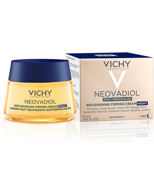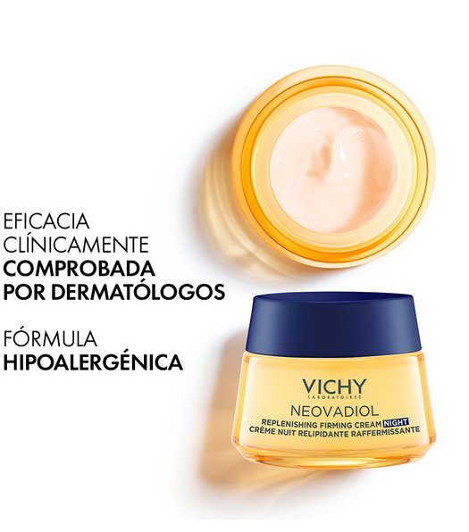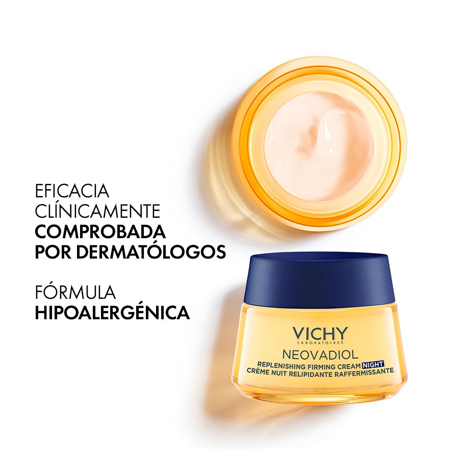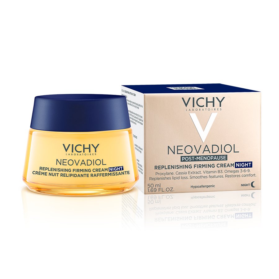 La CREMA DE NOCHE REAFIRMANTE RELIPIDIZANTE reactiva los mecanismos de la piel en la postmenopausia: flacidez, densidad, arrugas.