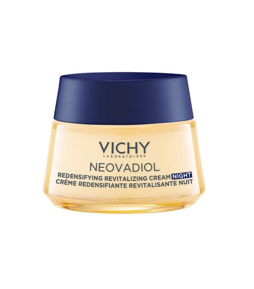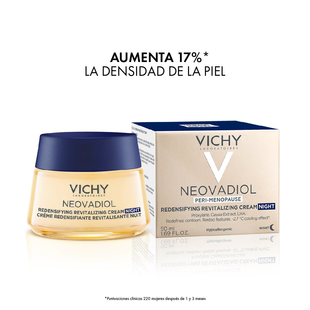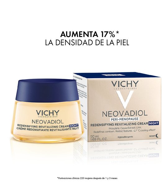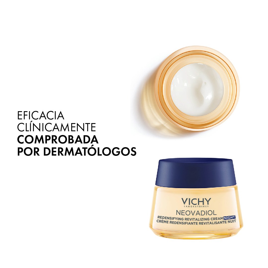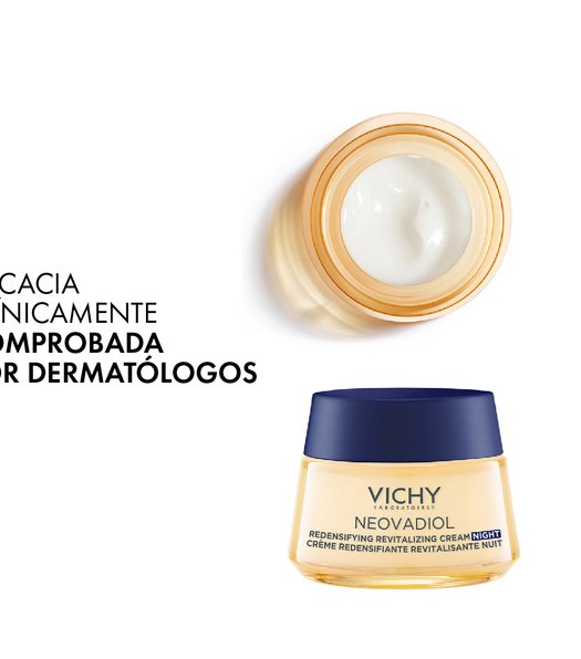 La CREMA DE NOCHE REVITALIZANTE Y REDENSIFICANTE reactiva los mecanismos de la piel durante la perimenopausia: densidad, luminosidad.