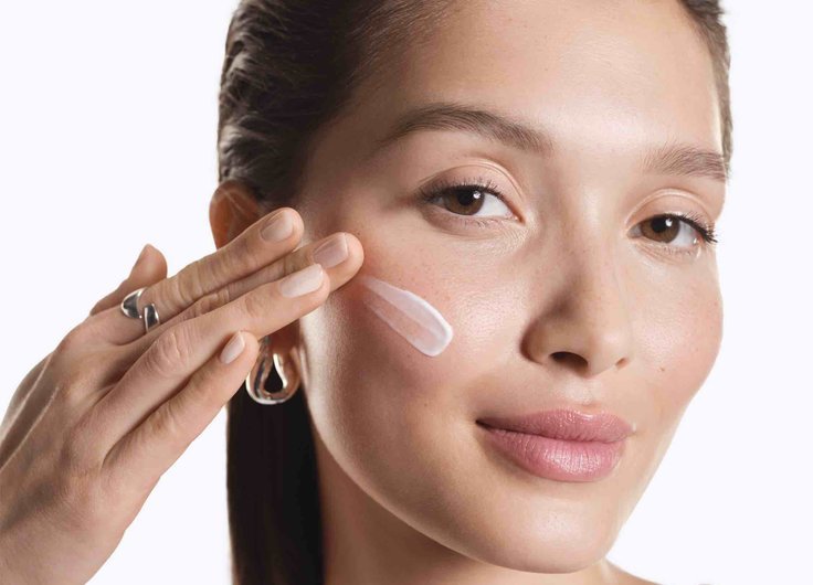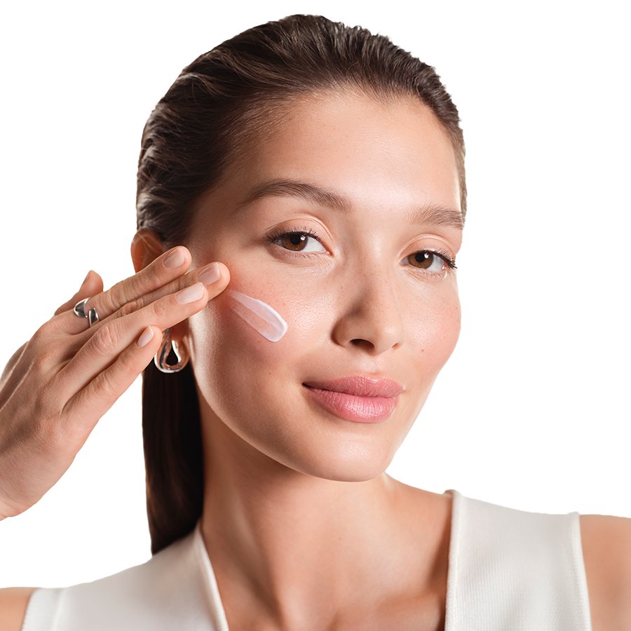 Aplícala sobre el rostro y el cuello con movimientos circulares suaves, extendiendo la crema uniformemente sobre la piel.