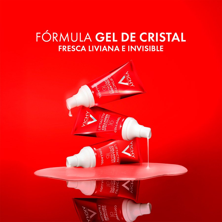 - Gel cristalino, fresco, liviano y de rápida absorción que potencia el colágeno.